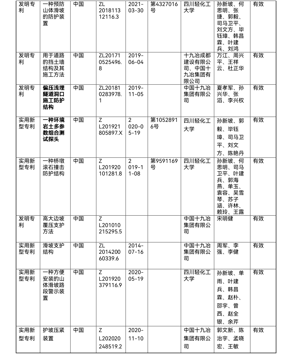 四川輕化工大學、中國十九冶集團有限公司、必照巖土科技(南京)有限公司